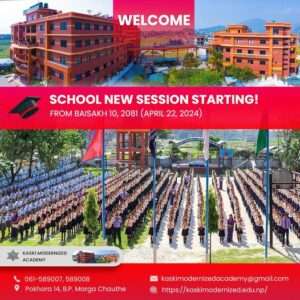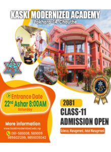 Kaski Modernized Academy is an academically selective co-educational secondary boarding school located at Chauthe B.P. Marg, Pokhara-14, Nepal. It covers area of 20 ropanies of its own and 5 huge attractive buildings. it provides quality education to around 2000+ students from Nursery to Grade 12. KMA prides itself on the quality of its excellent academic programs, along with co-curricular activities covering a wide range of genres.